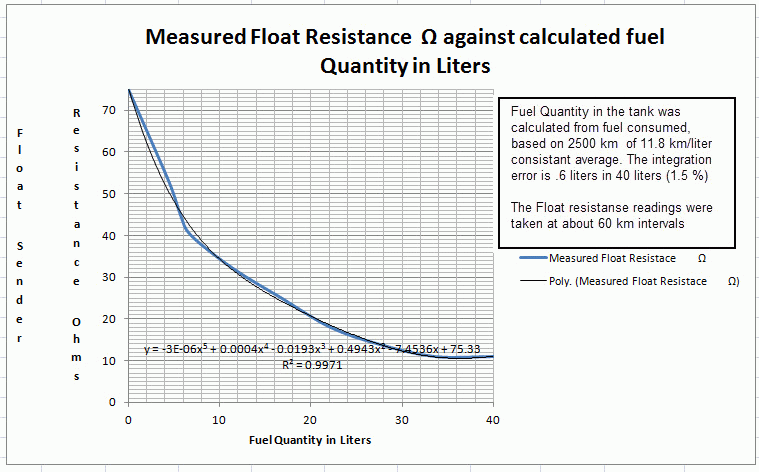 Some experiments have been done to determine the relationship between tank fuel level and sender resistance.