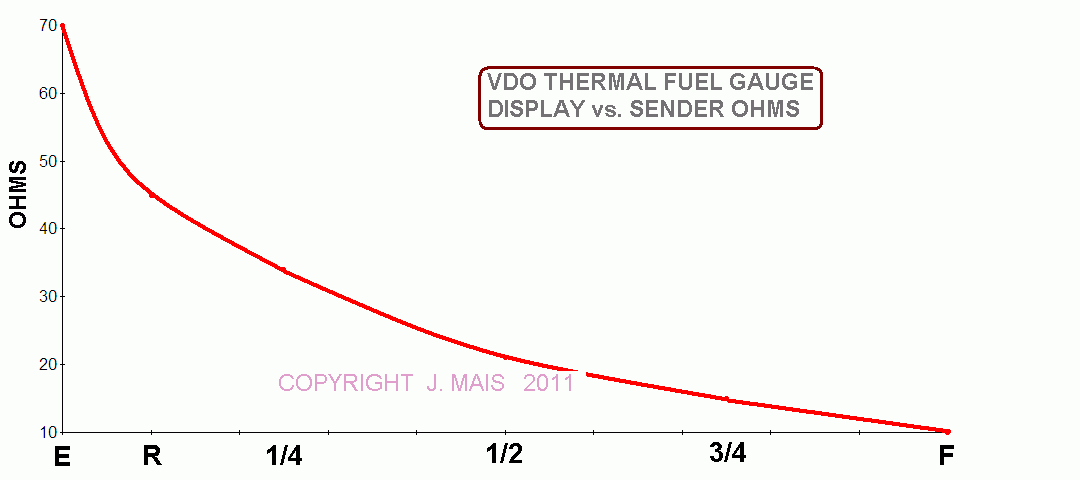 and this graph shows sender Ohms vs. fuel gauge needle position: