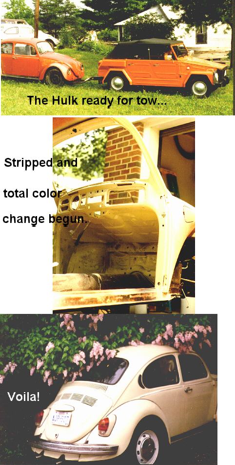 John and I set out in the THING one summer on a trip to Florida for the express purpose of finding a rust-free Beetle to tow home and restore.